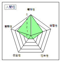 この診断は、ホスピタリティの視点から、受診者の資質や考え方をさまざまな角度から断層写真のように分析しています。当研究所の定義に従って、ホスピタリティ・マインドは全部で11の項目(人間性、創造性、自己管理、紳士・淑女の対応、アイデンティティ、思いやり、個人的魅力、リベラルな考え、感動付与、感謝、チャレンジ精神)から構成されています。