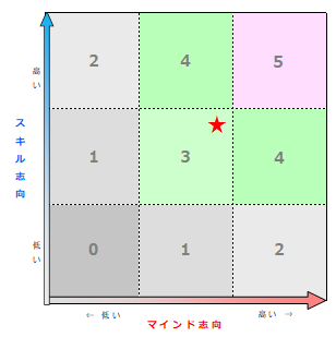 当研究所が提案するマインド志向とスキル志向の相関関係をベースにして、受診者の組織への貢献可能性について分析します。