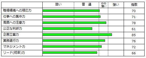 組織人として必要な能力について分析し、受診者の強みと弱みを明らかにします。